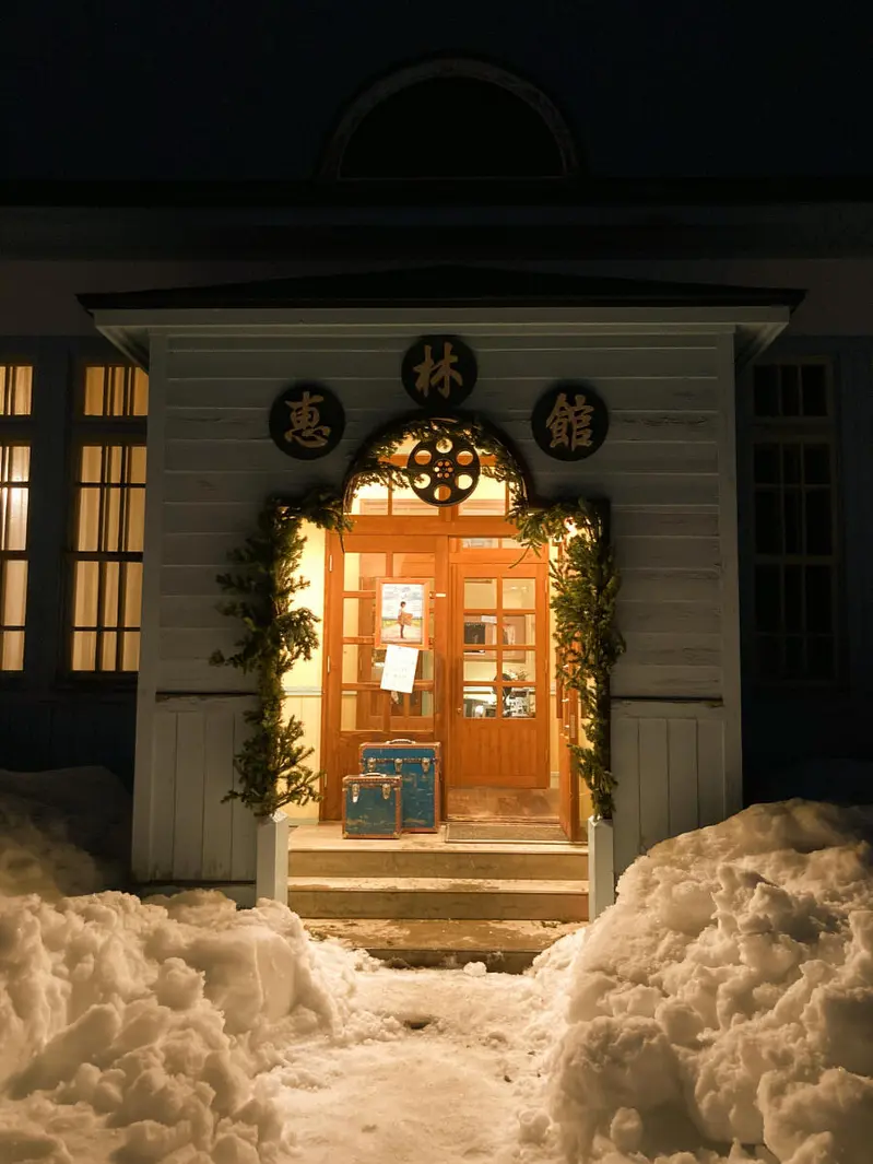 主催者の地域おこし協力隊・安部さんが毎月1-2作品映画を選んで、町内の昭和初期に建てられた恵林館や屋外の広場に大きなスクリーンを用意して上映をします。映画に合わせたフードやドリンク、焼きたてクッキーも用意。下川町とゆかりのあるアーティストによる音楽LIVEも併せて行うこともあり、とっても好評です。