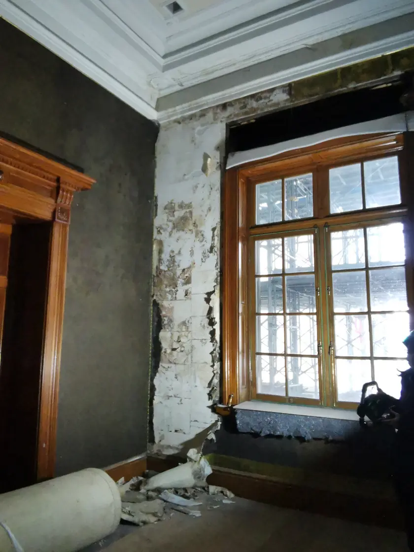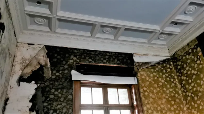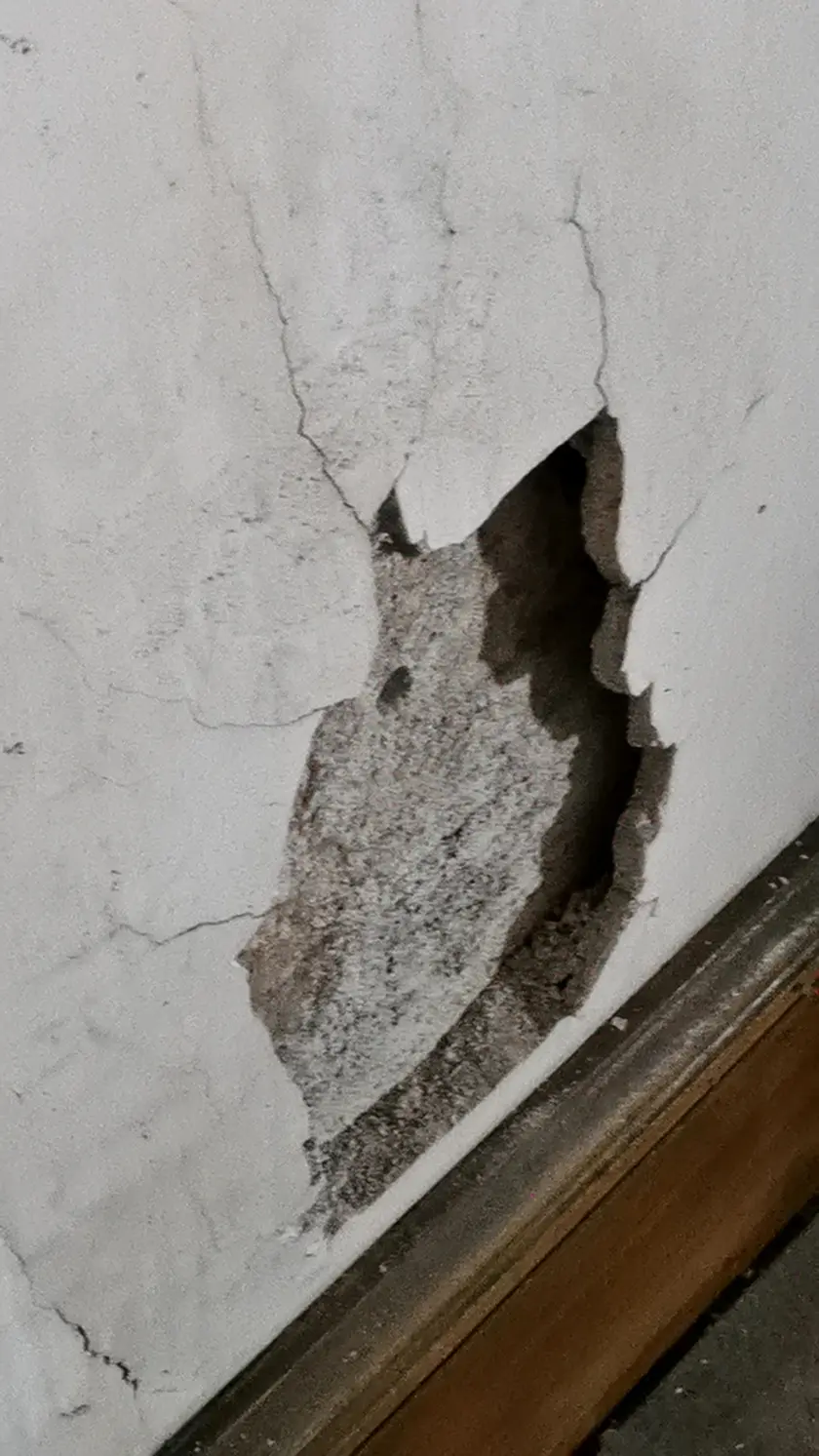 漆喰や壁、壁紙が劣化・破損してしまったようです。