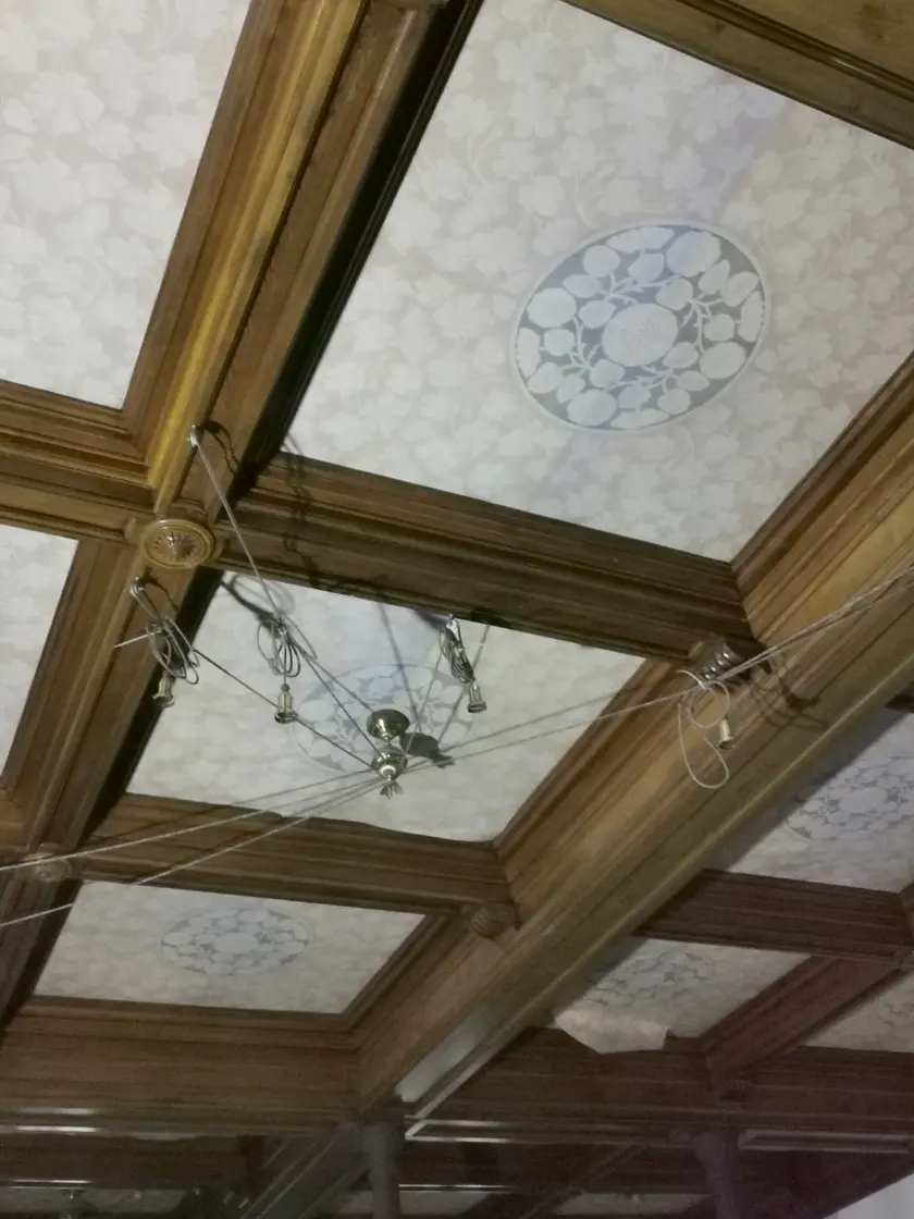 天井紙は以前の修理の際にオリジナルの壁紙からおこしたデザインを印刷して貼っていたそう。