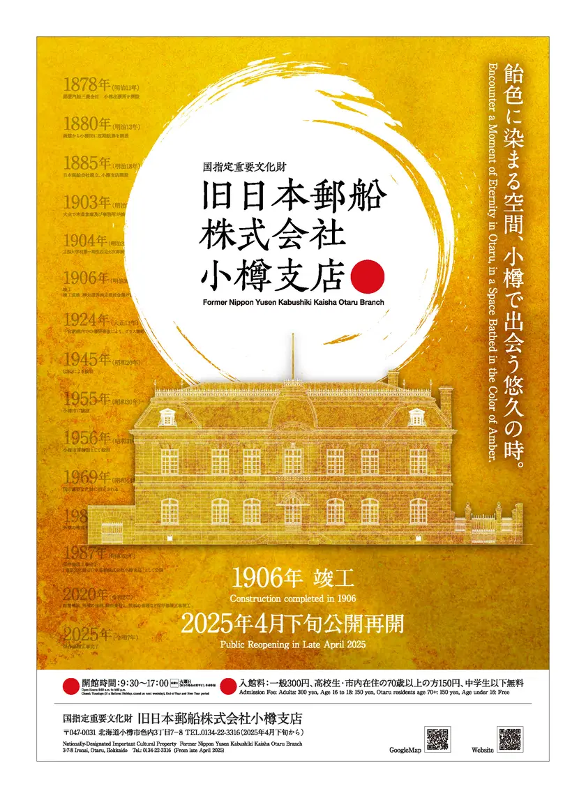 長き修復期間を経て、2025年4月25日に旧日本郵船株式会社小樽支店が公開再開されることになりました。