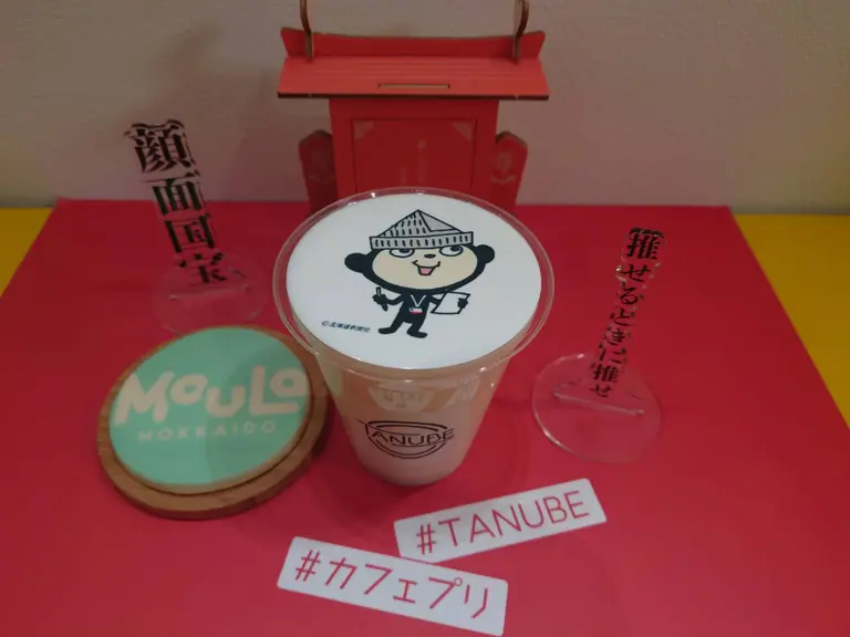 店内奥には札幌初上陸のカフェプリとフォトスポットがあり、こちらでスマートフォンに入っているお気に入りの写真やイラストをドリンクやクッキーにプリントできます。今回は『MouLa HOKKAIDO』のロゴをクッキーに、北海道新聞社のキャラクターぶんちゃんをドリンクに印刷してみました。カフェプリのQRコードを読み込み、画像を送信するだけで約1分くらいで完成します。完成後は横のフォトスポットで映え写真を撮影できます。