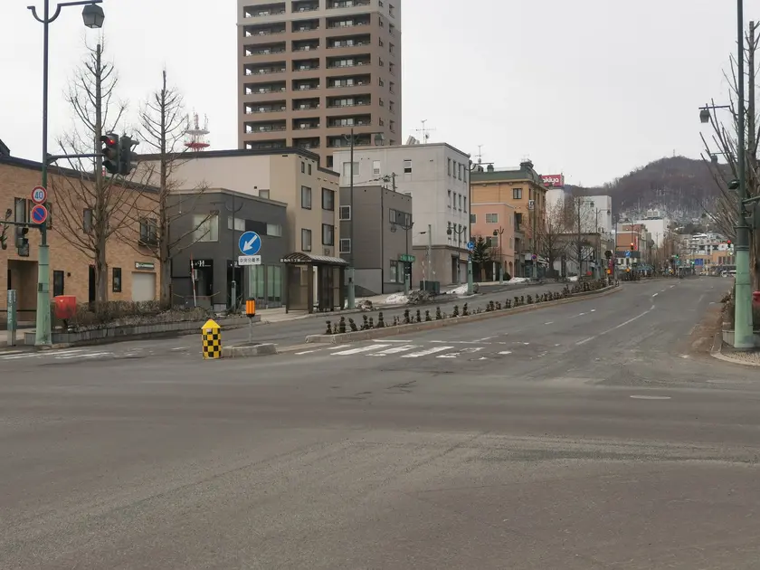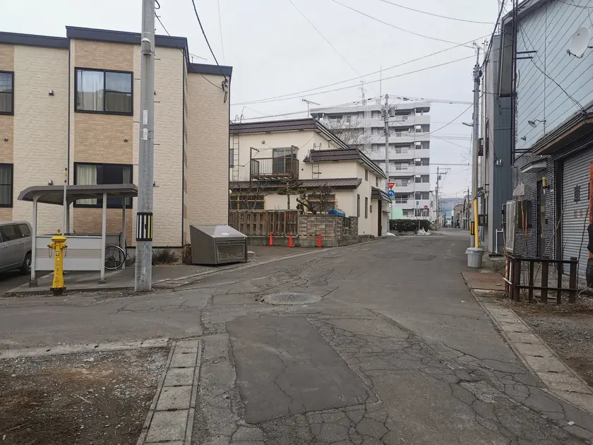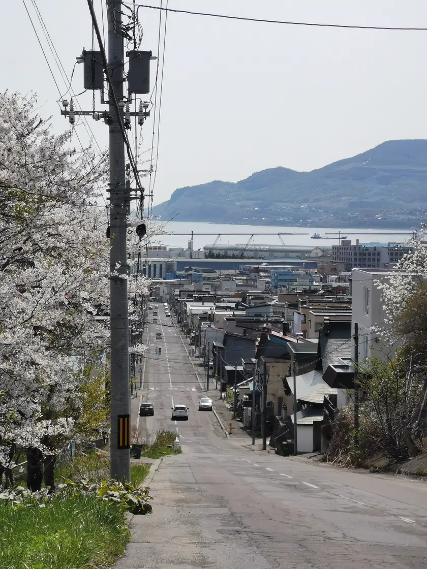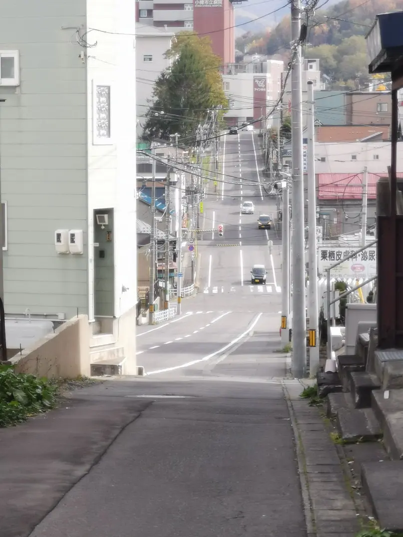 高架線を抜けて、小樽病院を下る坂から南小樽生協横の坂を登っていきます。