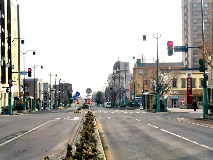 このまま下に降りて急ブレーキを踏むシーンは北陸銀行前。