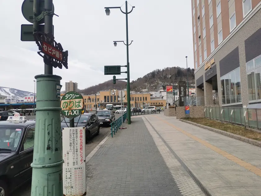 行人は小樽駅から車で待ち合わせ場所の運河プラザ横まで向かいます。