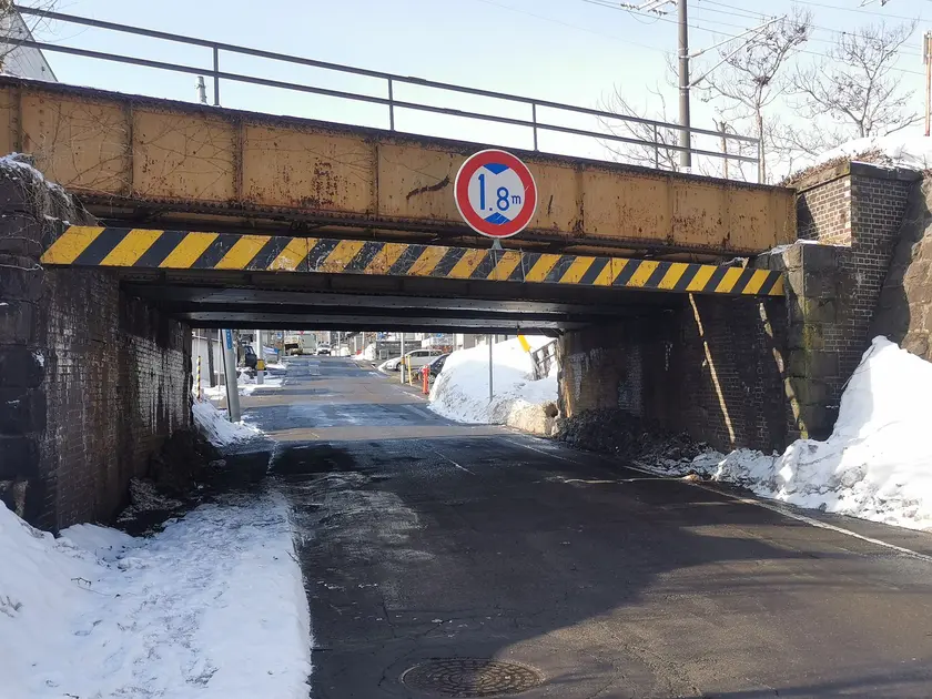 踏切前~線路下(高さ1.8m制限)~札樽自動車道下