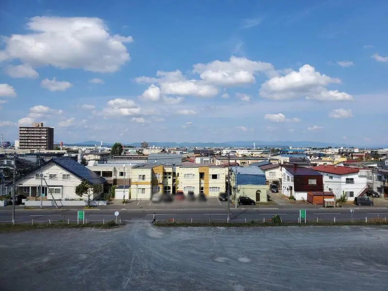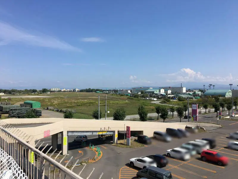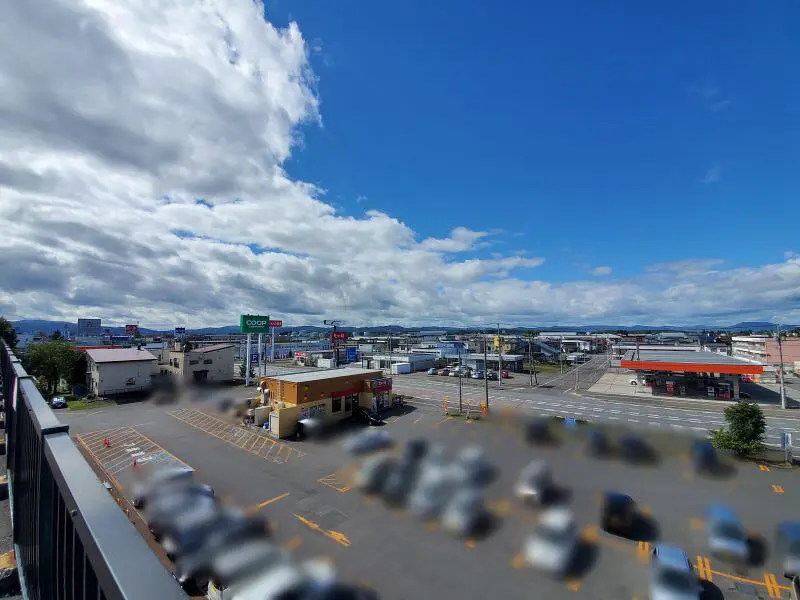 こちらの屋上駐車場からは、旭川自衛隊駐屯地やスタルヒン球場のライトまで見えます。春光方面と反対側から景色を見ると遠くにベルクラシックの特徴ある教会の屋根まで望むことが。