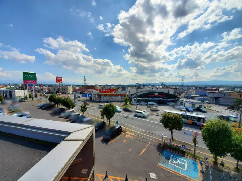 他のスーパーの駐車場よりも高いところから景色が見られる【イオンモール旭川西】。