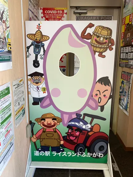 トイレ休憩の際に見つけたので、周りのイラストのキャラ詳細は謎なままですが、トラクターの顔がイイネと思いながら撮影しました。