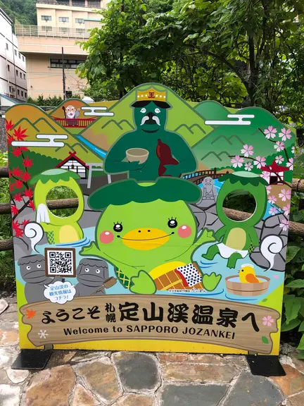 キャラクターのかっぽんは、定山渓のかっぱ淵に住んでいる定山渓温泉PR隊長なんだとか♪ ニコッと可愛らしいカッパちゃんになりきって1枚どうぞ♪