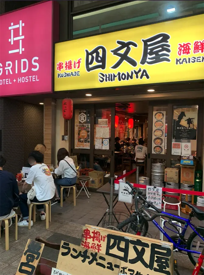 5丁目には大手のビジネスホテルもありますので、滞在スタイルに合わせて生活拠点を選べるのもおすすめの理由ですが、他にもおすすめポイントがあります!それはスバリ「食」です。とにかく5丁目には飲食店が多い!いろんなタイプの飲食店が軒を連ねています。私が滞在したゲストハウスの一階も串揚げ居酒屋で、ランチも食べられますし、昼飲みもできます!