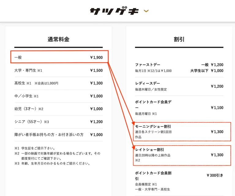 上映時間ギリギリに出発しても間に合う手軽さがクセになり3日間で5本も映画を観ました。朝や夜遅めの時間帯の映画でも気軽に見ることができます。サツゲキでは、朝と夜に割引サービスがあり、通常1900円のところ1300円で見ることができます。こんなサービスを享受できるのもこの立地ならではのメリットです!