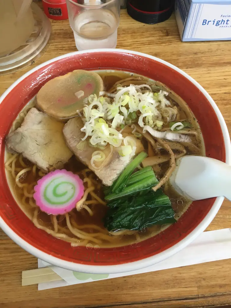 早速いただきます!昔ながらの優しいしょうゆラーメンが炎天下でくたびれた身体に沁みる〜。美味い〜。