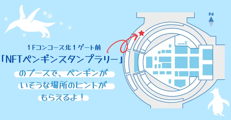 札幌モビリティショーの会場である札幌ドームの1Fコンコース北1ゲート前「NFTペンギンスタンプラリー」ブースへお越しください。