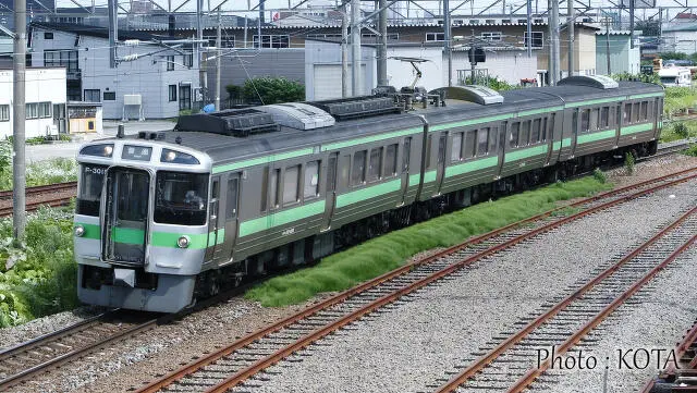 札幌〜旭川間、滝川〜旭川間で運用。片開き式3ドア、3両編成。