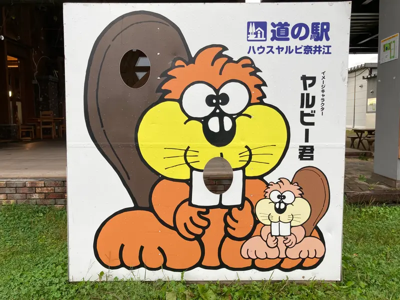 奈井江町にある道の駅「ハウスヤルビ奈井江」にヤルビー君の顔はめパネルを発見!!