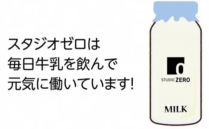 スタジオゼロは毎日牛乳を飲んで元気に働いています!