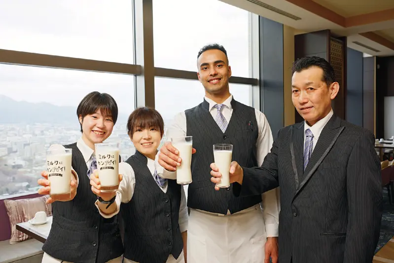北海道のおいしい牛乳を飲んで、今日も元気にお客さまをお迎えします!