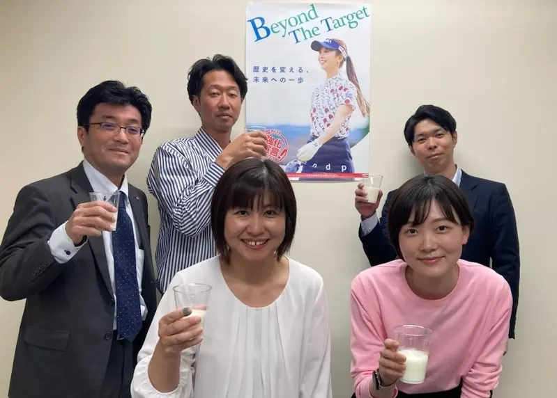 「職員皆、牛乳を飲んで企業支援の活力にしています!」