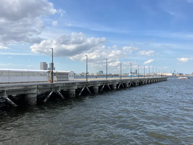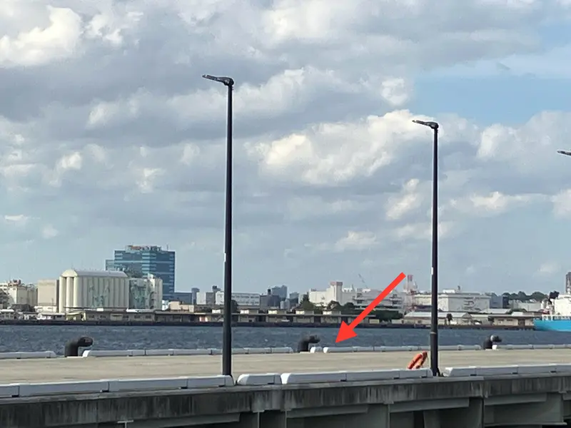 2人が立ったふ頭は、普段は立ち入り禁止の場所ですが、隣接する商業施設「横浜ハンマーヘッド」の「ハンマーヘッドパーク」から見ることができます。