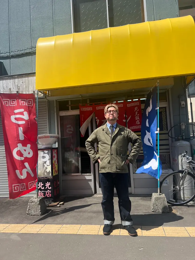 MSG&SONS / N-3 JACKET MADE IN USAと、札幌の街並みとのマッチ具合をご覧ください。
