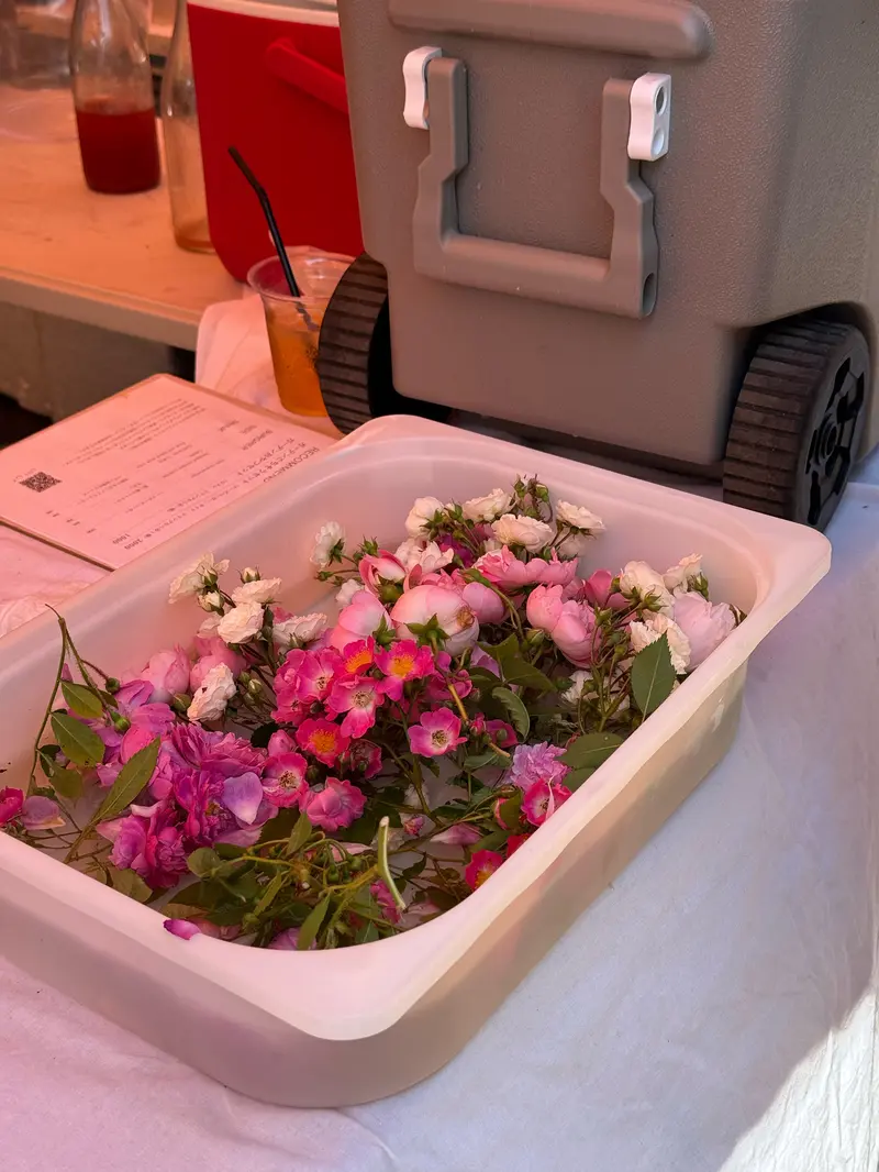 さっきのお花は【バラと塩梅のジュース】に飾られてきましたー(*´▽`*)