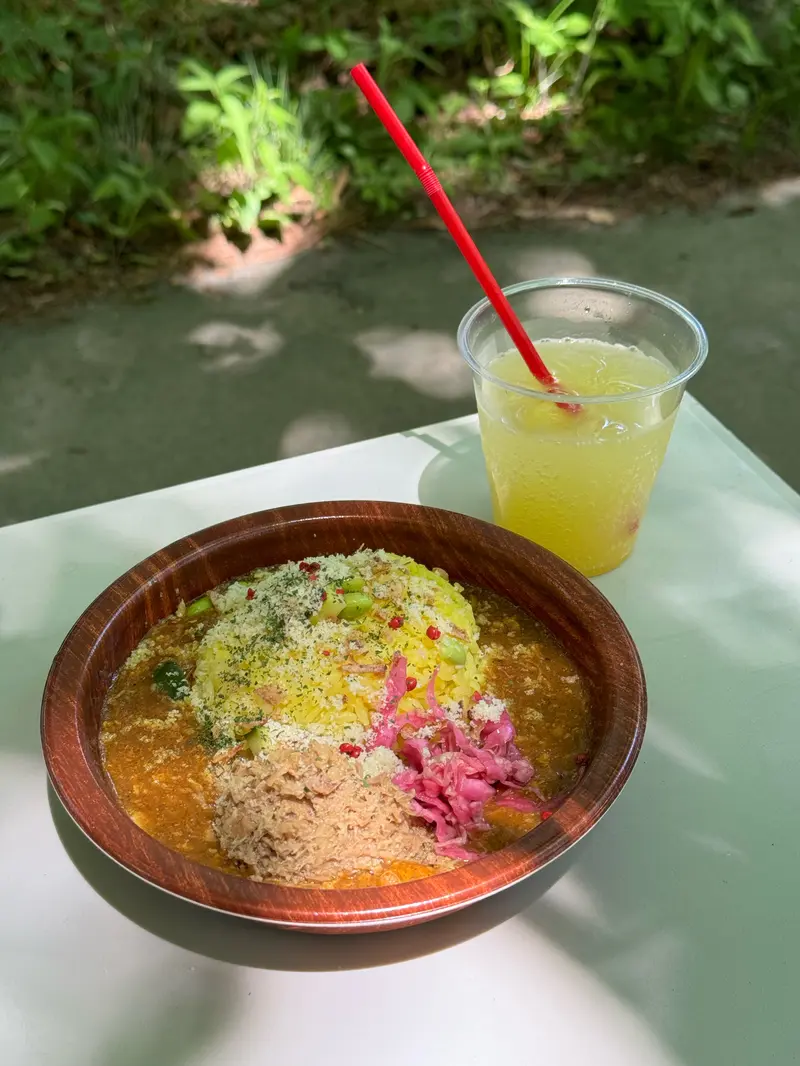 見た目も食欲をそそる美味いカレーと、暑くて失った水分を補給するのにもってこいの塩シークワーサージュースをGET♪
