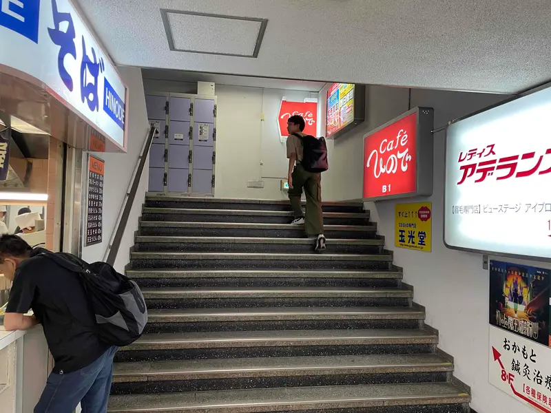 1階からも地下1階店舗に行くことができますが、空いていないときはビルの右側に入口に向かう階段が有りますのでそこから入りましょう