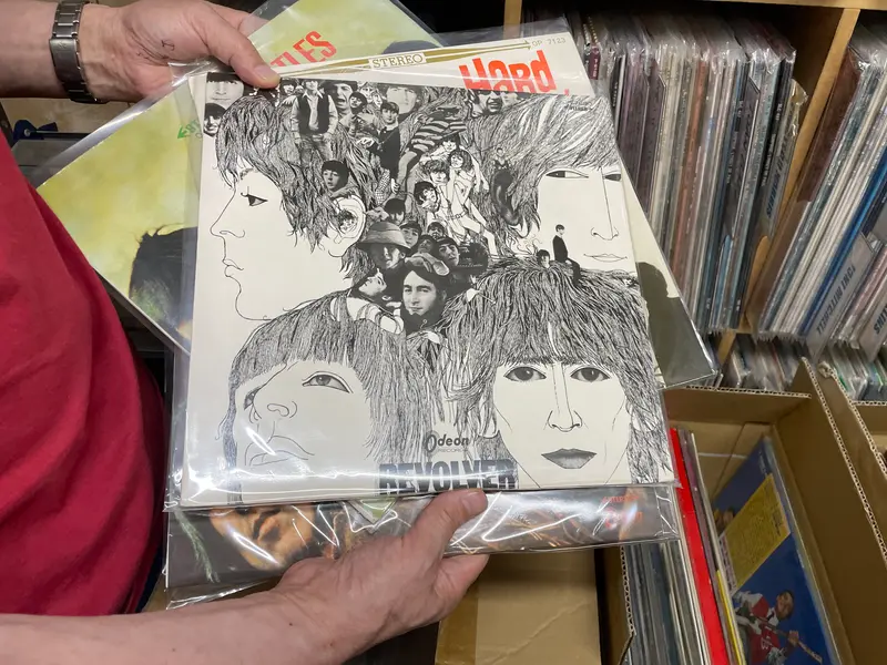 取材が終わった後、改めて店内を色々見てきました。最初の取材では気が付かなかったのですが、カウンターの正面にはビートルズのシングルやアルバムが大量にありました!ビートルズが好きな方は探しているレコードがあるかも???