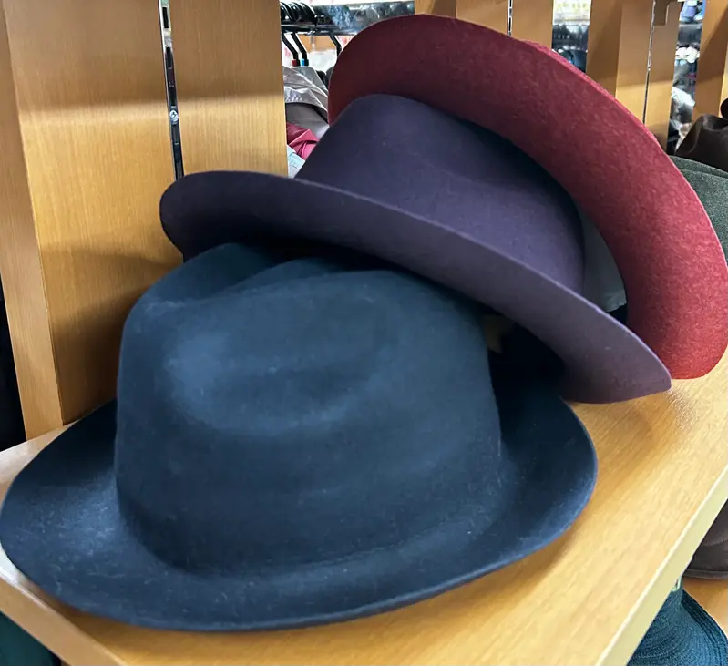 帽子としてのフェルトの利用に目を向けると、17世紀から20世紀半ばまで、モヘア(ヤギ)、ウール(羊)、そして高級なものではビーバーの毛を使い、フェルト、つまり縮毛の技術による男性用の帽子がイタリア、フランス、イギリスで作られています。フェルト帽子は型入れという成形技術が柱になります。