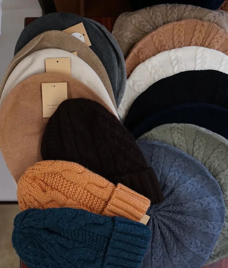 また、発色のよさでも知られ、被った途端に全身のファッションのバランスを整える微妙な色合いの無地帽子も届きました。