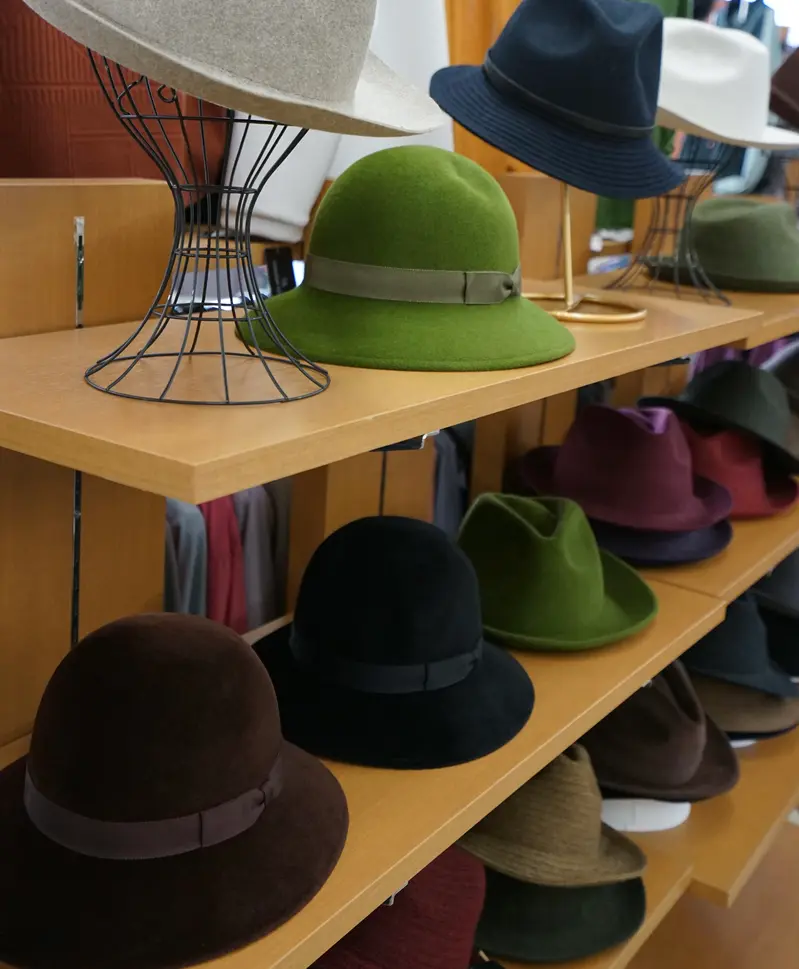 フェルトの中折れ帽、つば広帽子、そしてキャップまでバリエーションは豊富