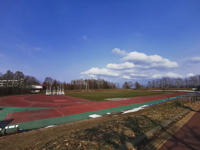 撮影時はトラックが舗装されていなかったのですが、現在は赤茶色のポリウレタンでトラックが舗装されています。