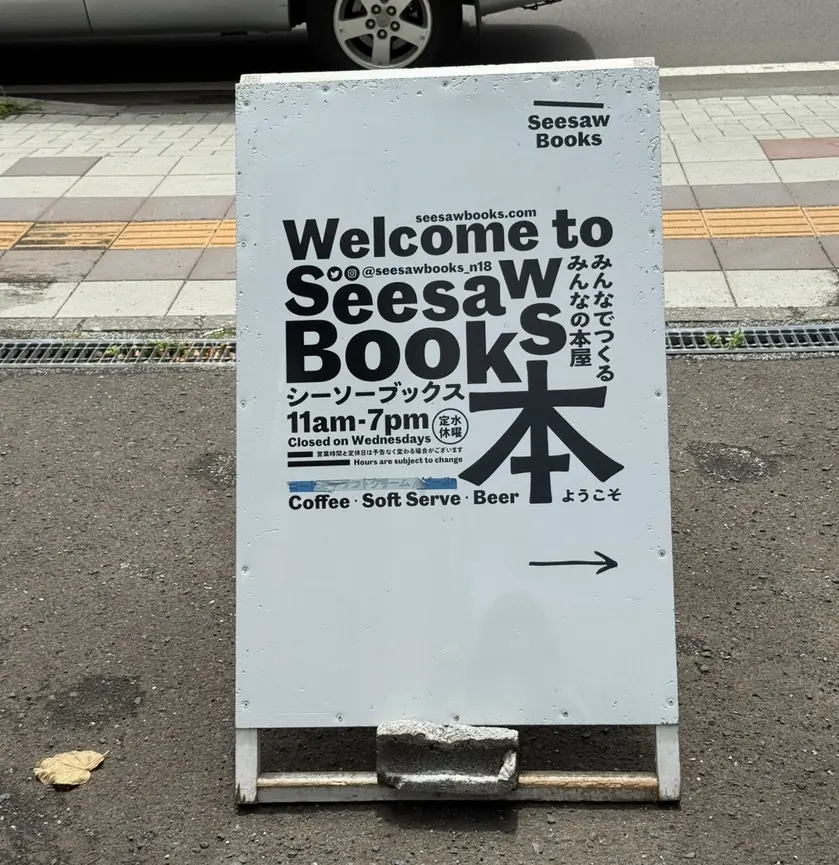 Seesaw Books は、札幌の中でもひと味違う雰囲気を持つ独立系書店。新刊や古本に加え、ZINEや小出版社の本、地域にまつわるタイトルなど、セレクトのセンスが光るラインナップが並んでいます。
