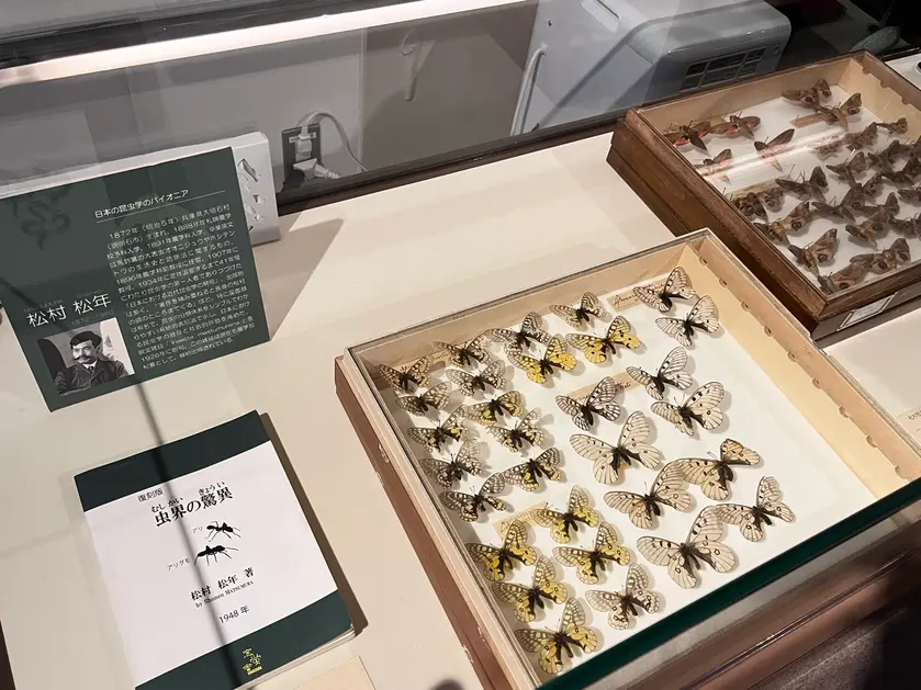 こちらは北海道大学創基150周年記念事業の一環として開催されたものです。全国で「人文的昆虫展」を開催している新部公亮氏(マロニエ昆虫館)が展示を制作しています。