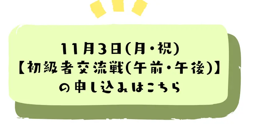 11月3日(月・祝) 初級者交流戦のみ10月22日(水)まで申し込みを延長しております。ご応募お待ちしております。