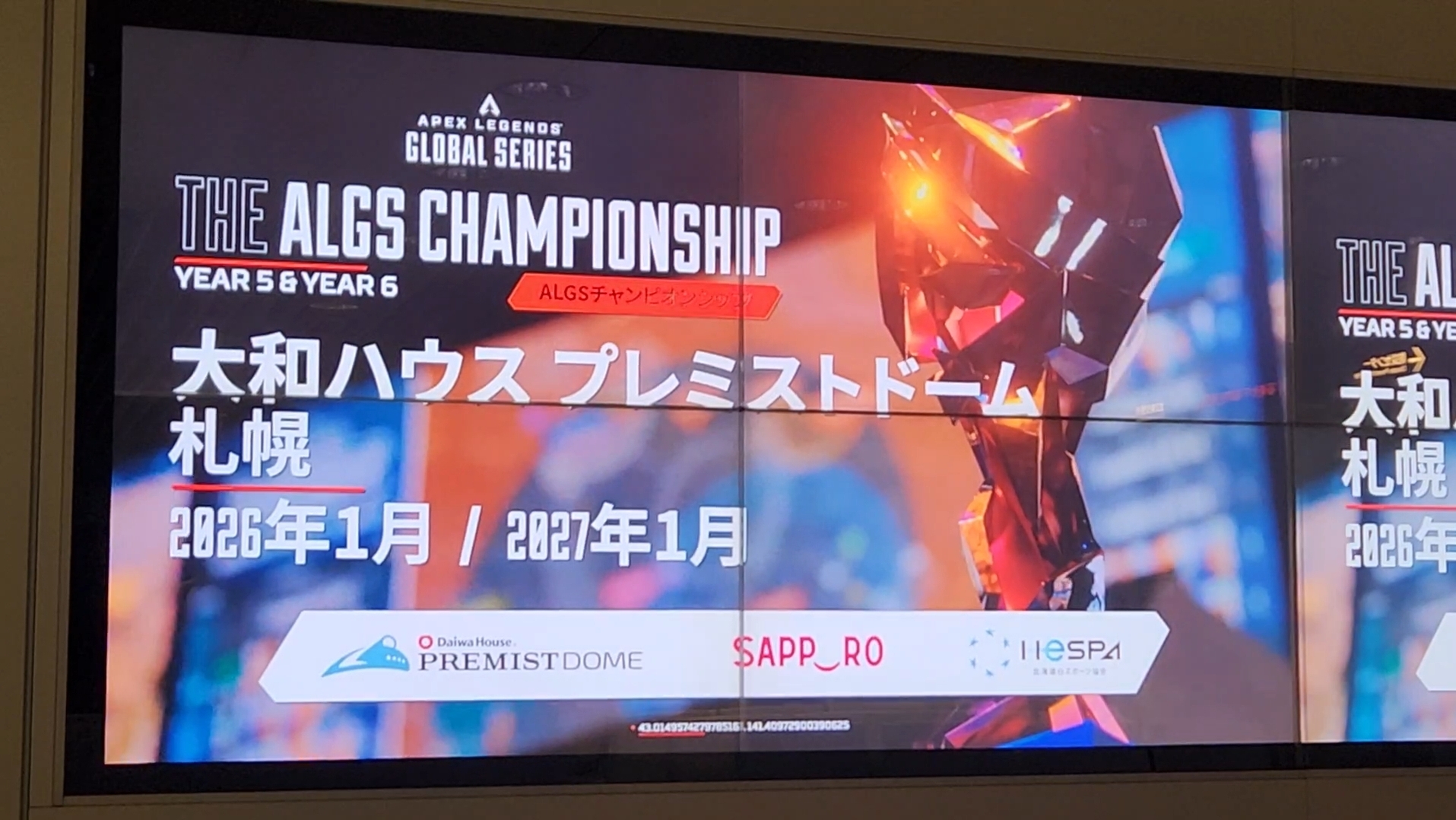 9月26日(金)、ALGS Championship Year 5の開催を記念し、東京ゲームショウ2025のプログラムの一環として、札幌駅前通地下歩行空間チ・カ・ホでApex Legendsのイベントのパブリックビューイングが開催されました!今回は当日のイベントの様子や、3年連続の札幌開催が決定したApex Legends Global Seriesの2026年の開催日程もお届けします。