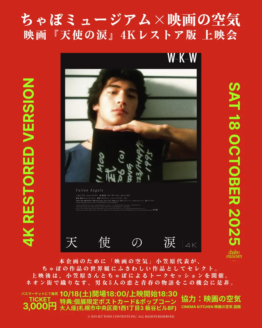 10月18日(土)18:00からは映画の上映会(有料)も開催されます。上映されるのは、ウォン・カーウァイ監督の名作『天使の涙』(主演:金城武)。