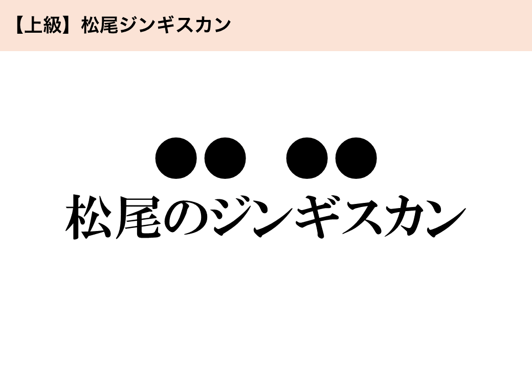 松尾ジンギスカン「●● ●● 松尾のジンギスカン」(ひらがな2文字、漢字は1文字、同じ言葉)