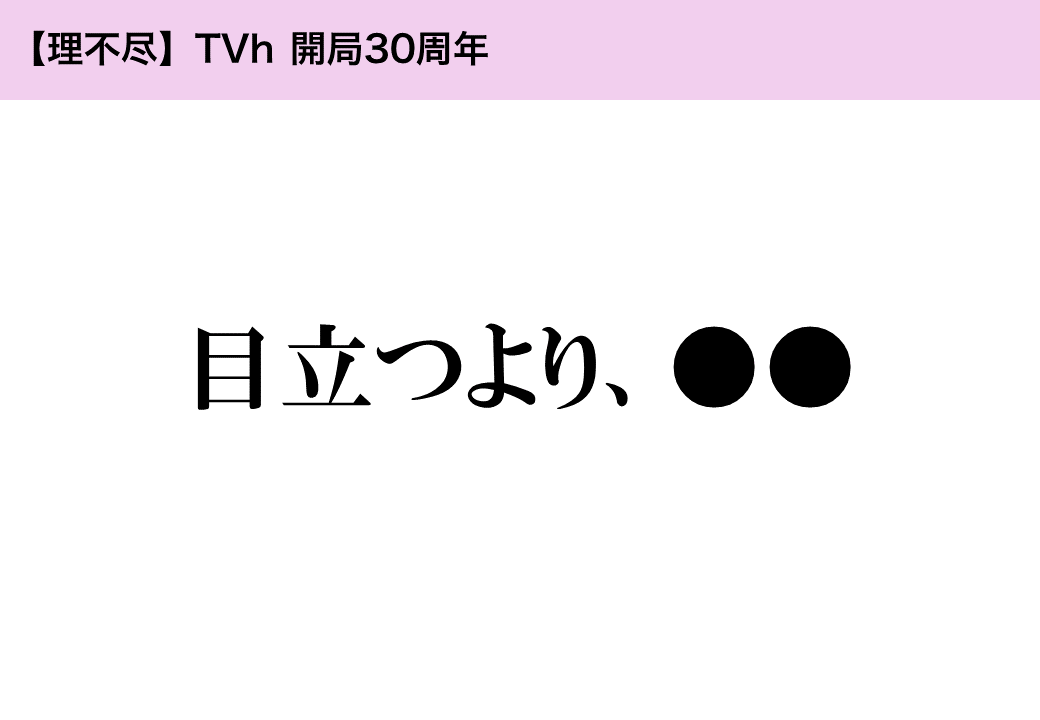 TVh 開局30周年「目立つより、●●」(漢字とひらがな1文字ずつ、ひらがな読みで3文字)