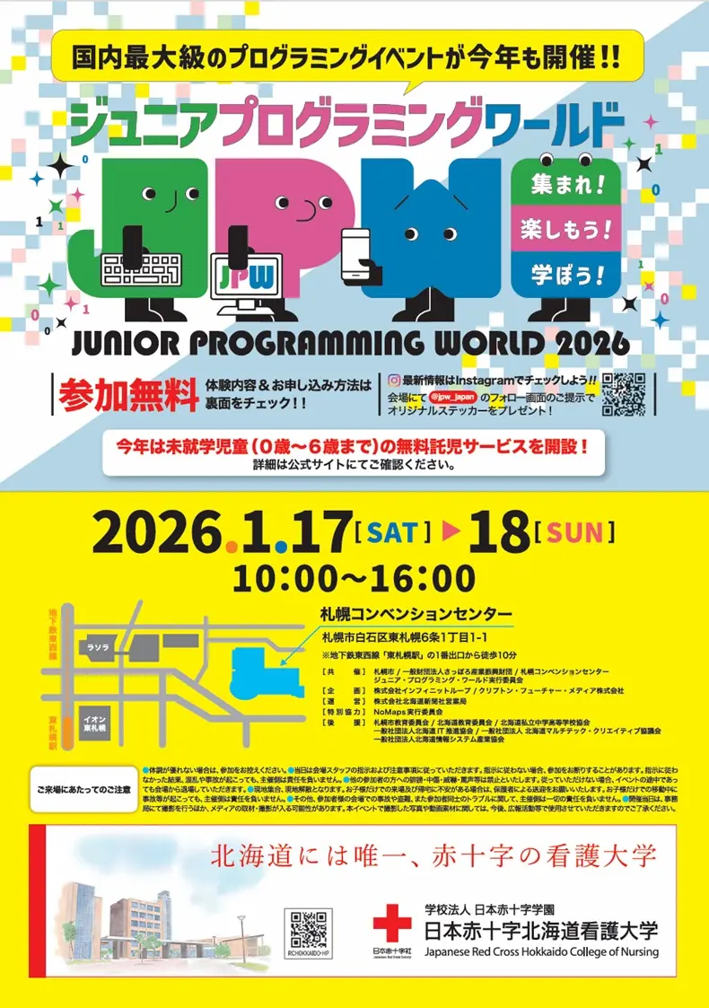 [共催] 札幌市 / 一般財団法人さっぽろ産業振興財団 / 札幌コンベンションセンター / ジュニア・プログラミング・ワールド実行委員会