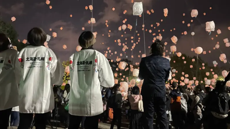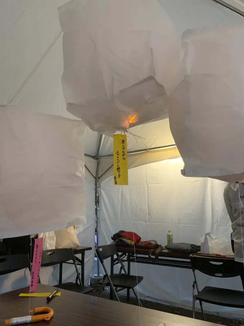 それぞれの想いや願いを書いた短冊のついたランタンを夜空に打ち上げました!