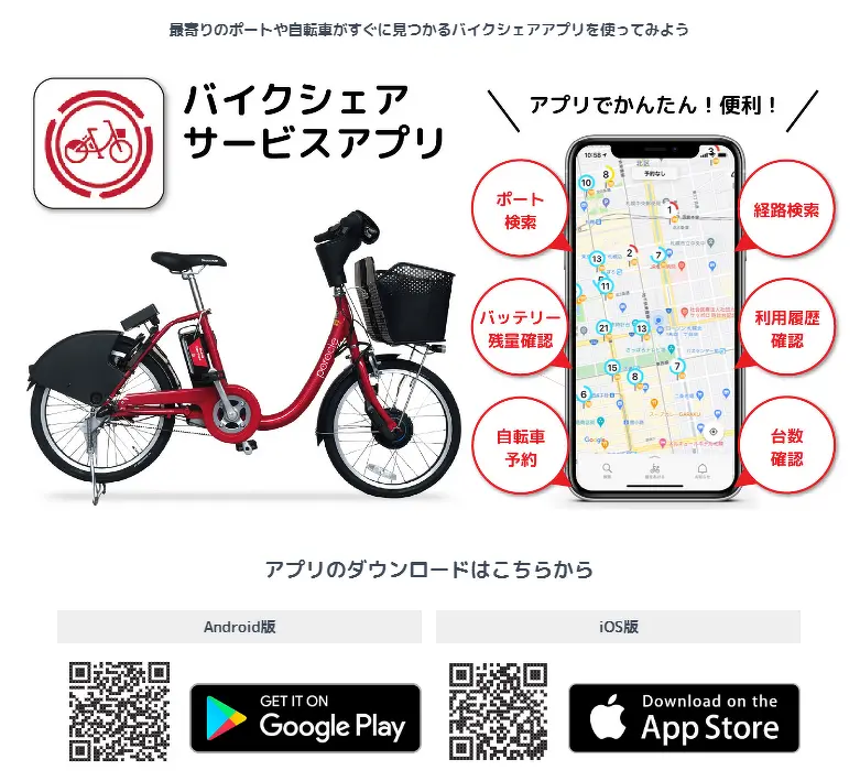 ポロクルの赤い自転車で街中を移動する人たちもよく見かけますよね。