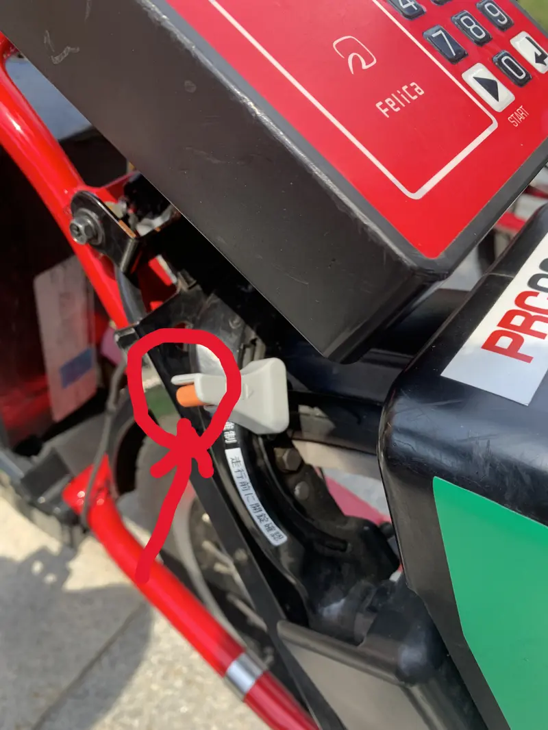 (自転車の操作パネルのすぐ下にPRC○○○○と書いているので、アプリで予約したものと同じ番号を見つけましょう!)