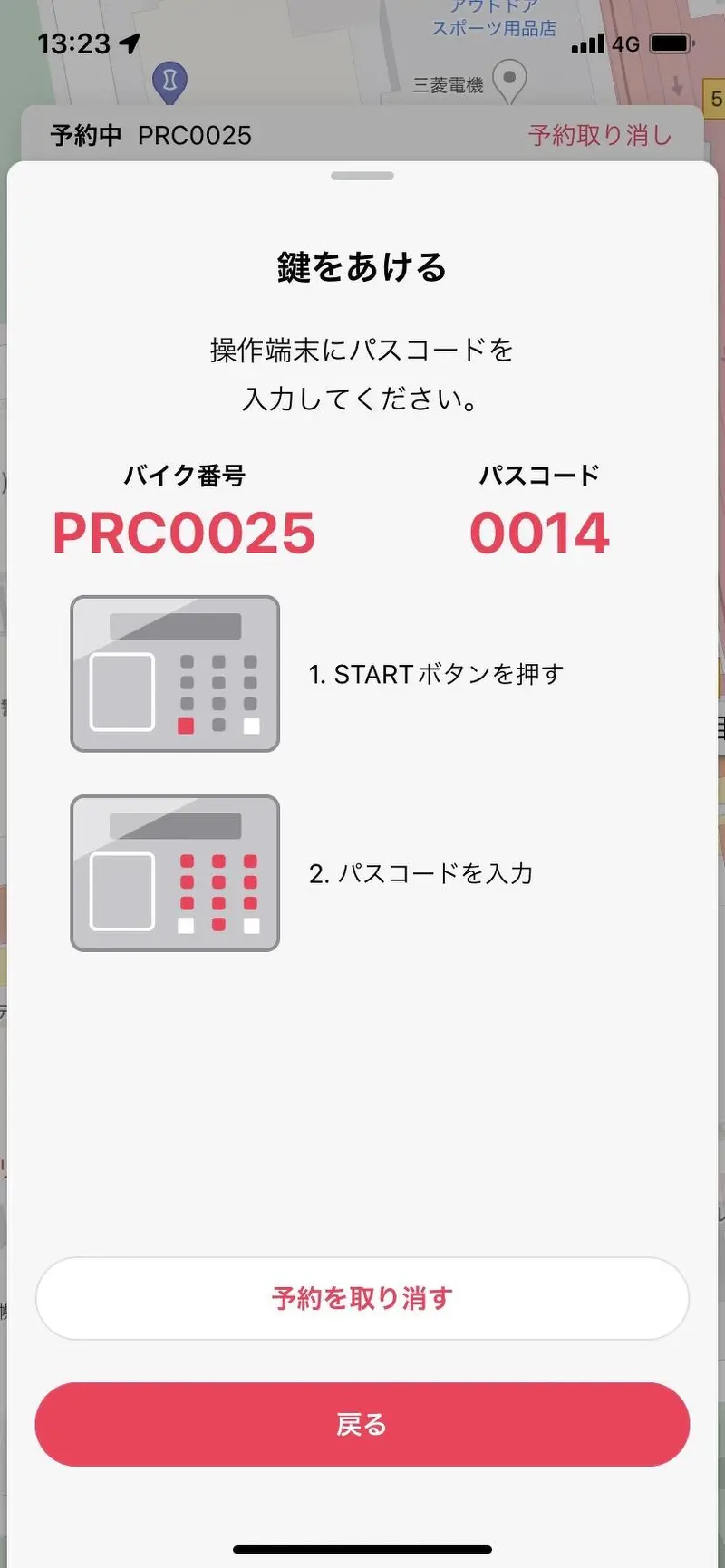 ステップ3≫ポートへ移動し、予約した自転車にパスコードを入力して開錠!