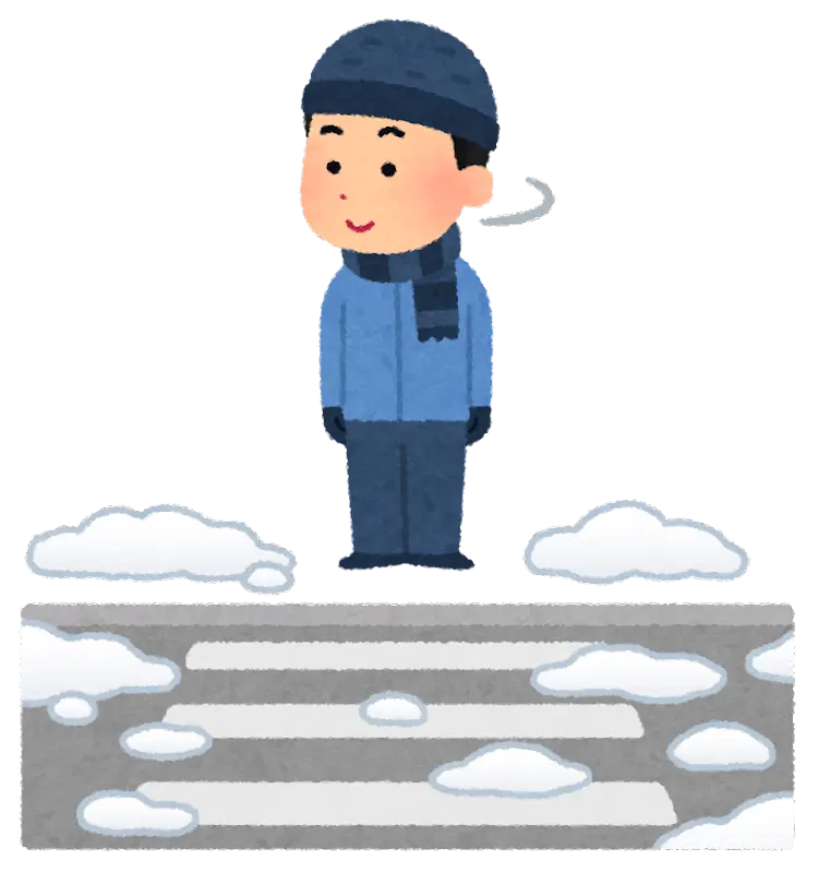 また、大型の除雪車が通った後は雪が激しく圧縮されて氷のようにツルツルになっています。その他、横断歩道の白線の部分も非常に滑りやすいので道路を横断する際には気をつけましょう。