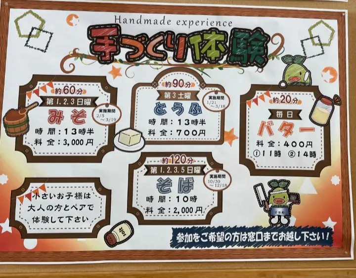 悪天候の場合、園内では手作り体験講座も開催されています!