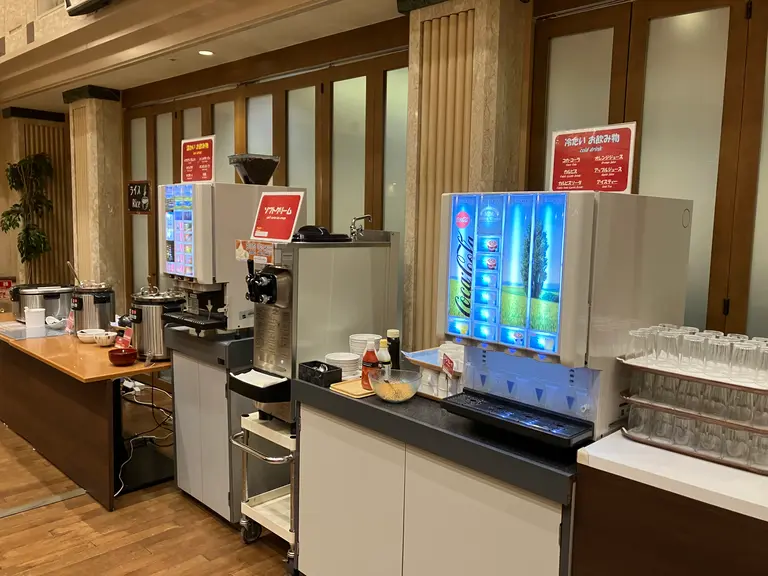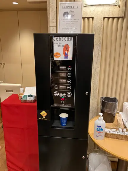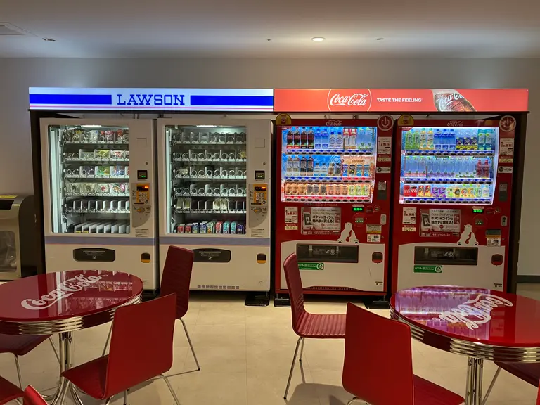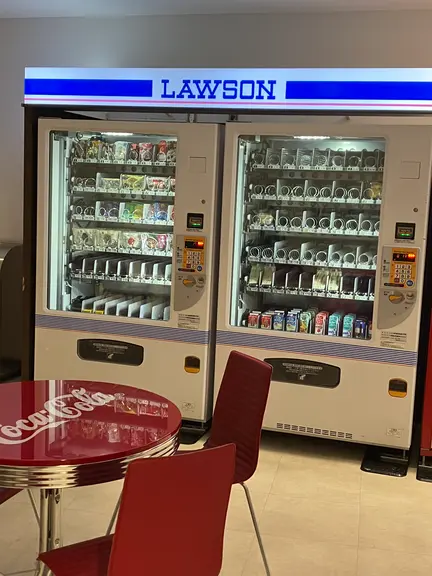 参考ですが、1階到着ロビーのホテル出入口近くにローソンの自動販売機があり、そちらでスナックや飲物が購入できます。