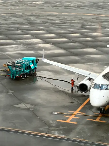 窓の外を見ると、もう飛行機の出発準備中でした。