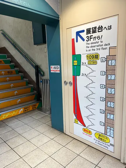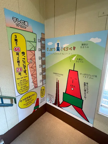 私は階段を登りましたが、「あと何段」という表示があったり、テレビ父さん情報などが読めたりするので、少しゼーハーしましたが、楽しく登れました♪