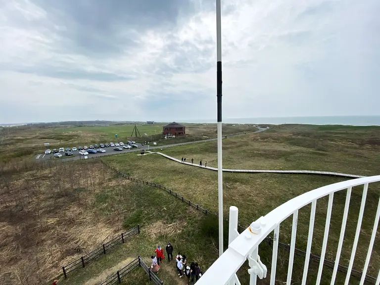 狭い灯台内部を頑張って上りきってテッペンに到着!そしてそこからの景色は「はまなすの丘公園」すべてを見渡すことができました。